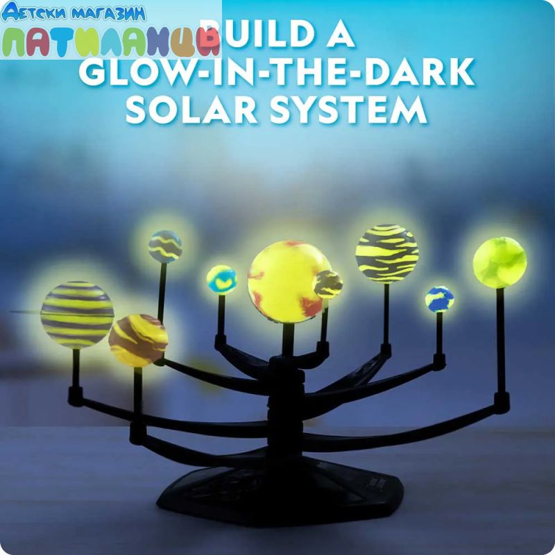 Този комплект включва детайлни модели на Слънцето и планетите, които светят в тъмното, създавайки впечатляващи ефекти и правейки ученето за космоса истинско приключение. След като се „заредят“ на светлина, елементите започват да светят в тъмнина, което улеснява обсъждането и запаметяването на имената и характеристиките на планетите.