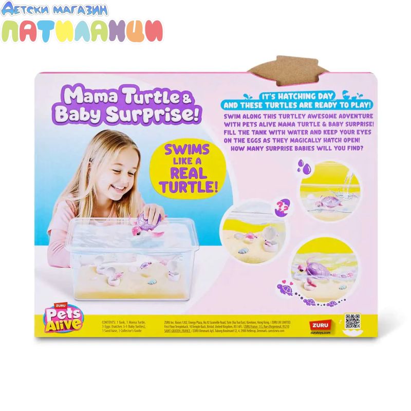 Запознайте се с чаровната мама костенурка с бебета от серията Pets Alive – интерактивна играчка, която съчетава реалистичен външен вид, нежни движения и елементи на изненада, които ще очароват всяко дете.
