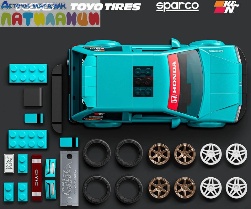 Създай своя собствена мини реплика на Honda Civic с конструктора Brick Shop Hot Wheels JHF62! Този комплект предлага забавно и креативно занимание за всички фенове на сглобяемите модели и спортните коли.