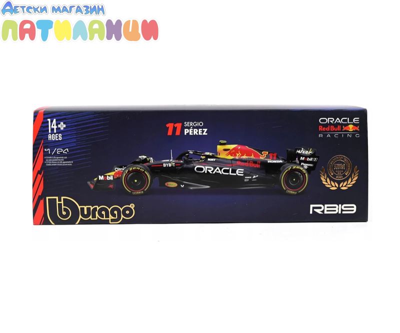 Добавете динамика и скорост във вашата колекция с металния модел на Formula 1 Oracle Red Bull Racing RB19 №11, пилотиран от Sergio Perez през сезон 2023 – от Bburago в мащаб 1:24! Този впечатляващ модел пресъздава спортната и технична красота на болида с висока детайлност и качество на изработка.