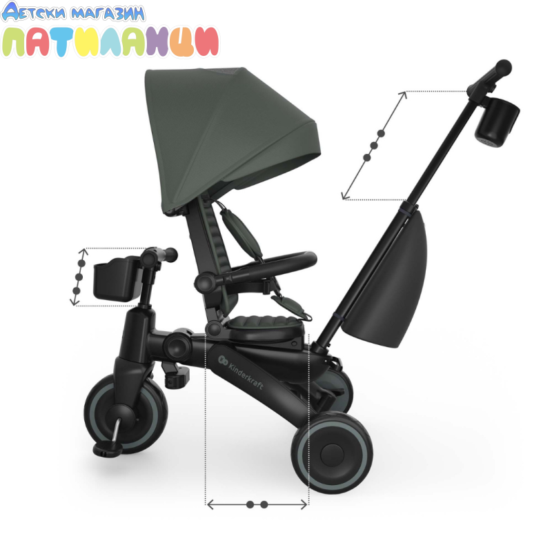 Сгъваема триколка със сенник KinderKraft JAZZ 3 ЗЕЛЕНА