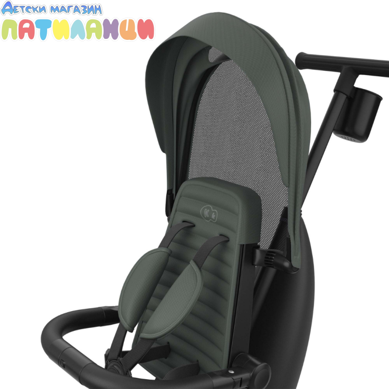Големият сенник UPF 50+ с водоустойчиво покритие предпазва от слънце и дъжд, а вентилацията осигурява комфорт в по-топлите дни.