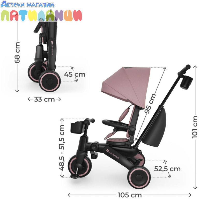 Сгъваема триколка със сенник KinderKraft JAZZ 3 PINK