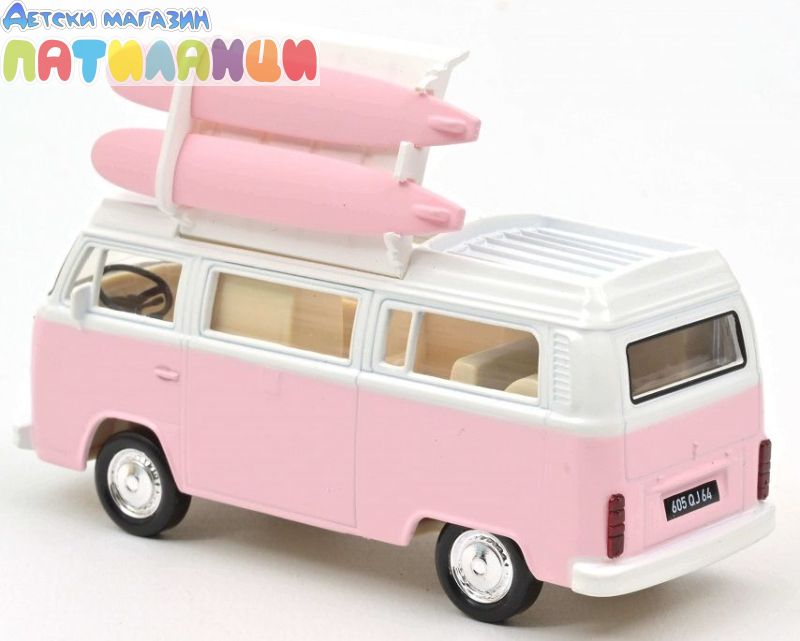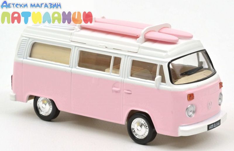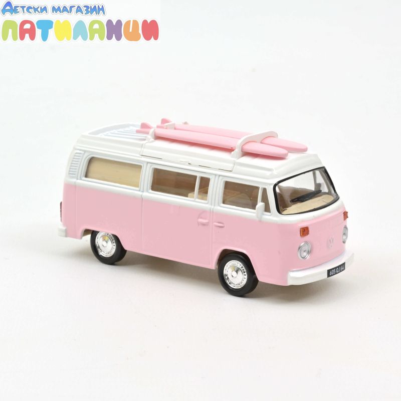 Добавете към своята колекция истинска ретро икона – Volkswagen Combi T2b Camper Van от 1973 г. в стилен розов цвят. Част от серията Jet-Car на Norev, този модел в мащаб 1:43 впечатлява с автентична визия и внимание към детайла.