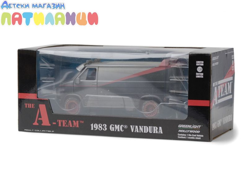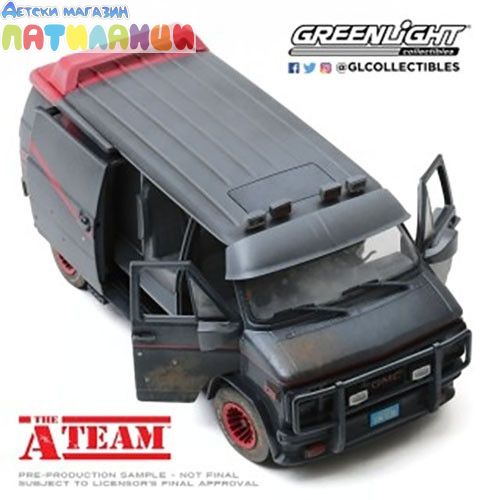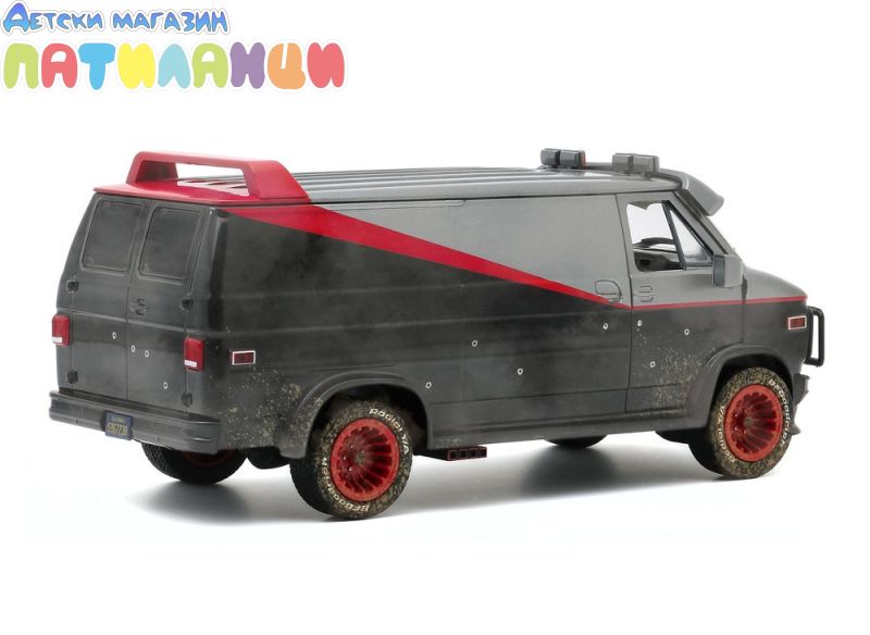 Пренесете култовата атмосфера от телевизионния сериал The A-Team (1983–87) с детайлен метален модел на 1983 GMC Vandura – Weathered Version с дупки от куршуми в мащаб 1:24. Тази версия от Greenlight впечатлява с автентична визия и внимание към детайла, включително ефекти на „остаряване“ и бойни следи.