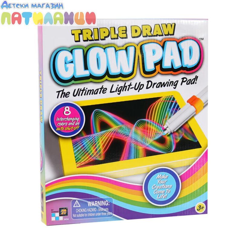 Дъската стимулира въображението, креативността и художествените умения, като позволява многократна употреба без загуба на качество. Лесна за използване и подходяща както за вкъщи, така и за път, Triple Draw е чудесен подарък за малки артисти, любители на рисуването и всички, които обичат да творят с цвят и светлина!