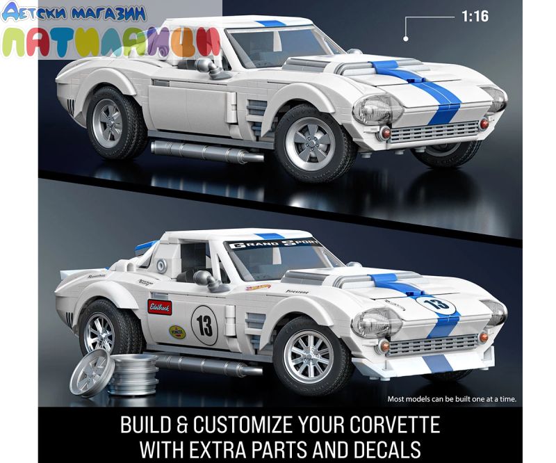 Напълно сглобяем Corvette Grand Sport в компютър 1:16, с прецизно възпроизведени пропорции и реалистичен дизайн;