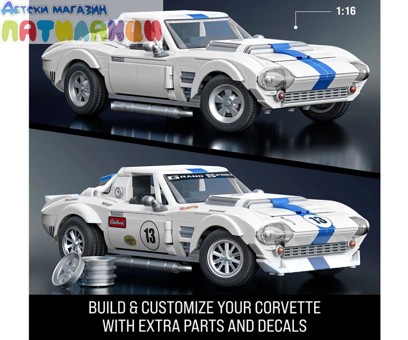 По-малко от 130 броя от оригиналния Corvette Grand Sport са произведени… но сега можеш да го притежаваш и сам да го построиш! Сглоби тази емблематична американска икона на скоростта в машината 1:16, с невероятно внимание към детайла, автентичен дизайн и възможности за персонализация – част от престижната серия Mattel Brick Shop Elite Series™.