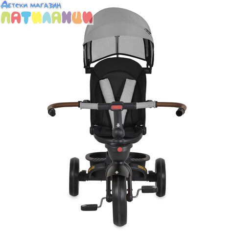 Триколката предлага стабилност и безопасност при движение, а сгъваемият механизъм улеснява пренасянето и съхранението – перфектна за градски разходки, пътувания или посещения на приятели и роднини. Нежният сив цвят придава модерен и универсален вид, който подхожда на всяко дете.