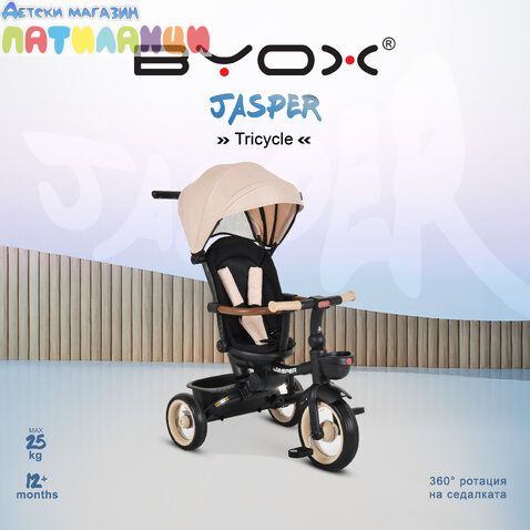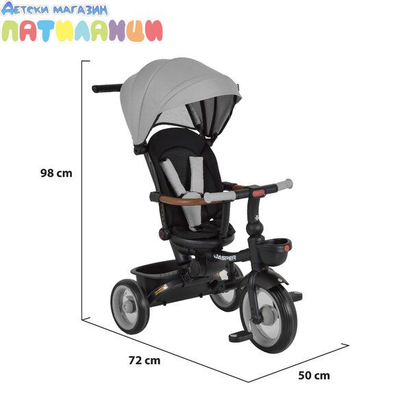 Сгъваемата детска триколка Byox Jasper в стилен сив цвят е практично и удобно решение за разходки навън и забавления на открито. Проектирана с мисъл за комфорта на детето и удобството на родителите, тя съчетава здрава конструкция, комфортна седалка и лесно сгъване за компактно съхранение.