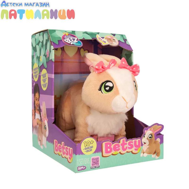Бетси е очарователно пухкаво зайче, което издава забавни звуци. Реагира на различни звуци, ходи и мърда с уши.