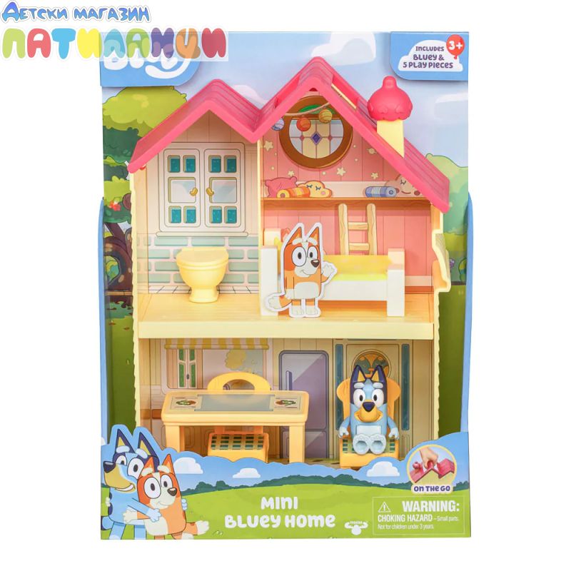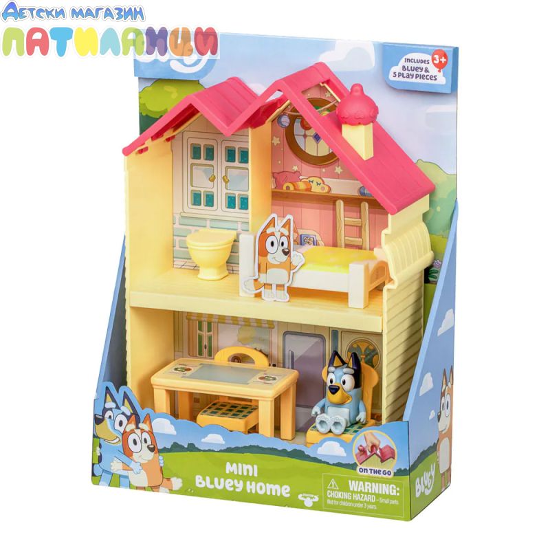 Пресъздай любимите си сцени от сериала и играй с Блуи в мини къщата за фигурки. Дрямка в спалнята? Похапване в кухнята? Можеш да вземеш комплекта със себе си с помощта на дръжката, така че е страхотно и за забавление в движение!