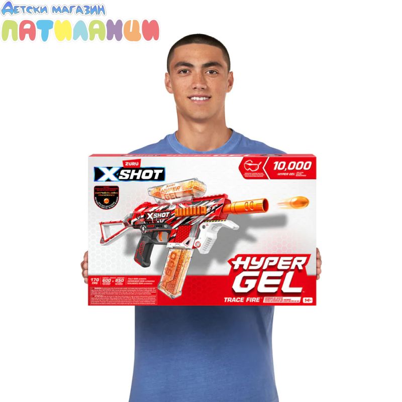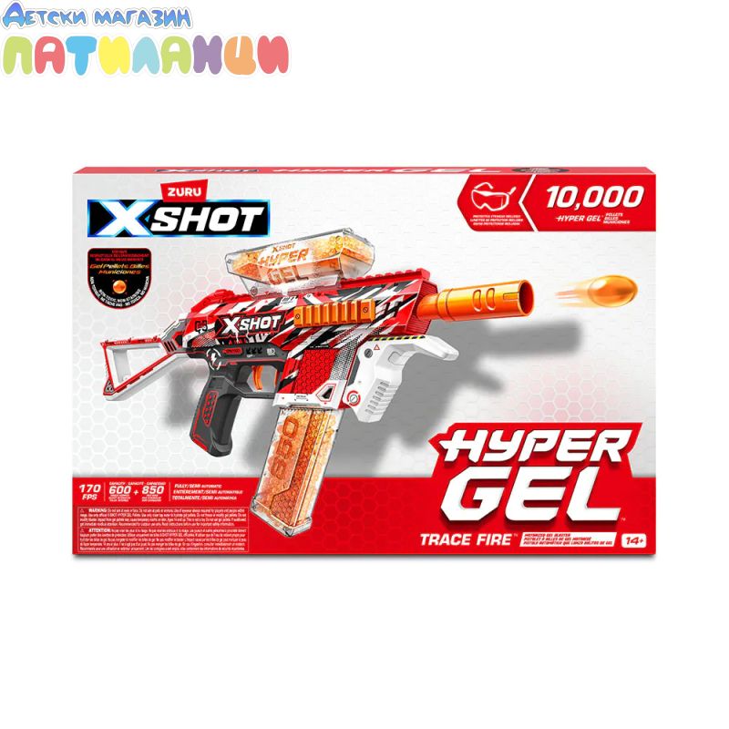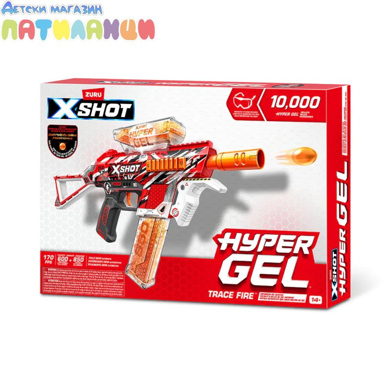 Бластерът с гел топчета X-Shot Hyper Gel Trace Fire 36621 е перфектният избор за динамични и изпълнени с адреналин игри на открито. Моделът впечатлява със стилен дизайн и мощна стрелба с хидратиращи се гел топчета, които са меки, безопасни и не оставят следи след употреба.