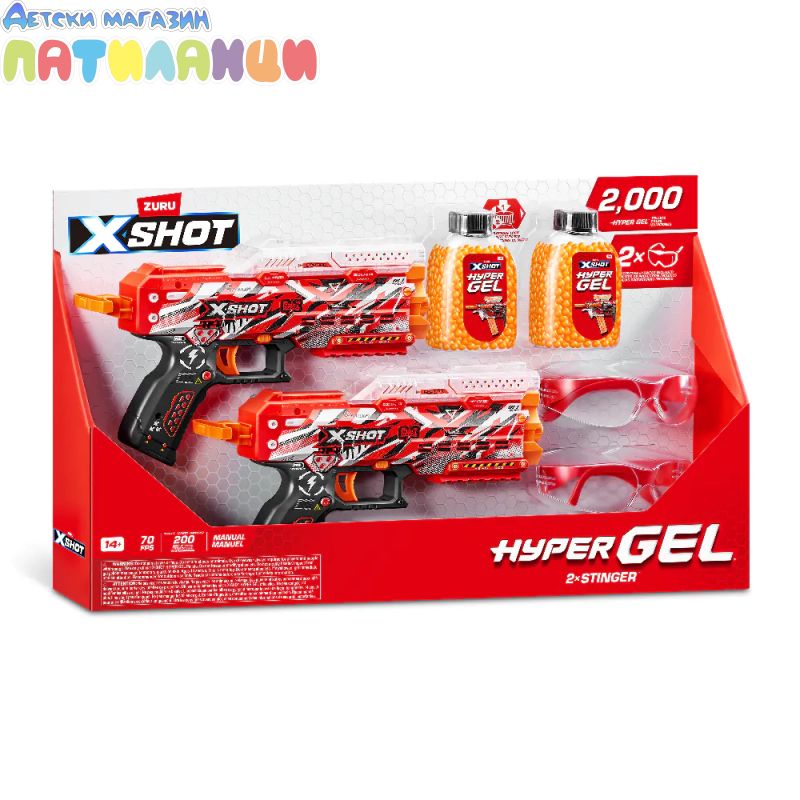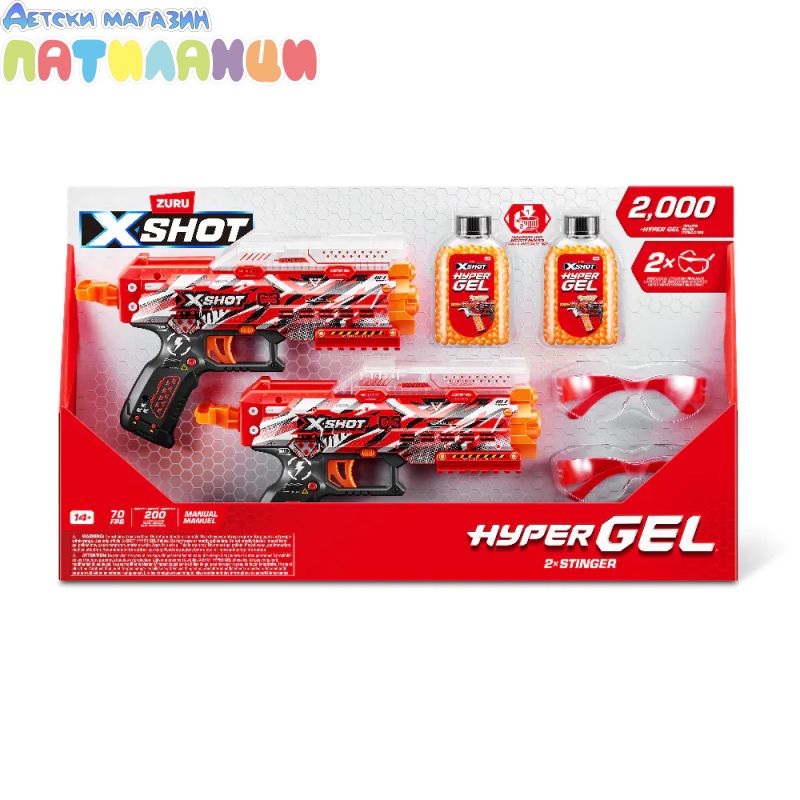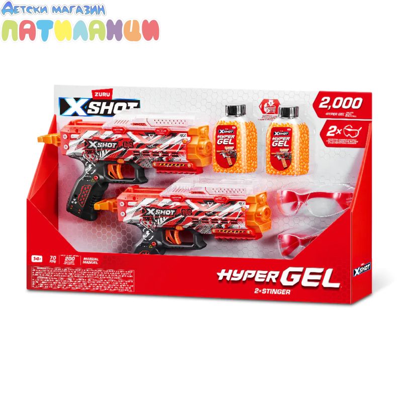 Комплектът бластери с гел топчета X‑Shot Hyper Gel Stinger 36742 е динамичен и вълнуващ комплект за активни игри, който включва две бластера и голямо количество меки Hyper Gel топчета – идеален за двама играчи или забавни състезания на открито.