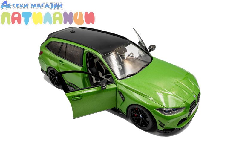 Колекционерският модел BMW M3 Touring в мащаб 1:18 на производителя Solido пресъздава с висока точност дизайна и спортния характер на легендарното BMW M. Моделът е изработен от висококачествен метал (die-cast) с прецизни детайли и реалистичен интериор, което го прави отличен избор за колекционери и любители на автомобилите.