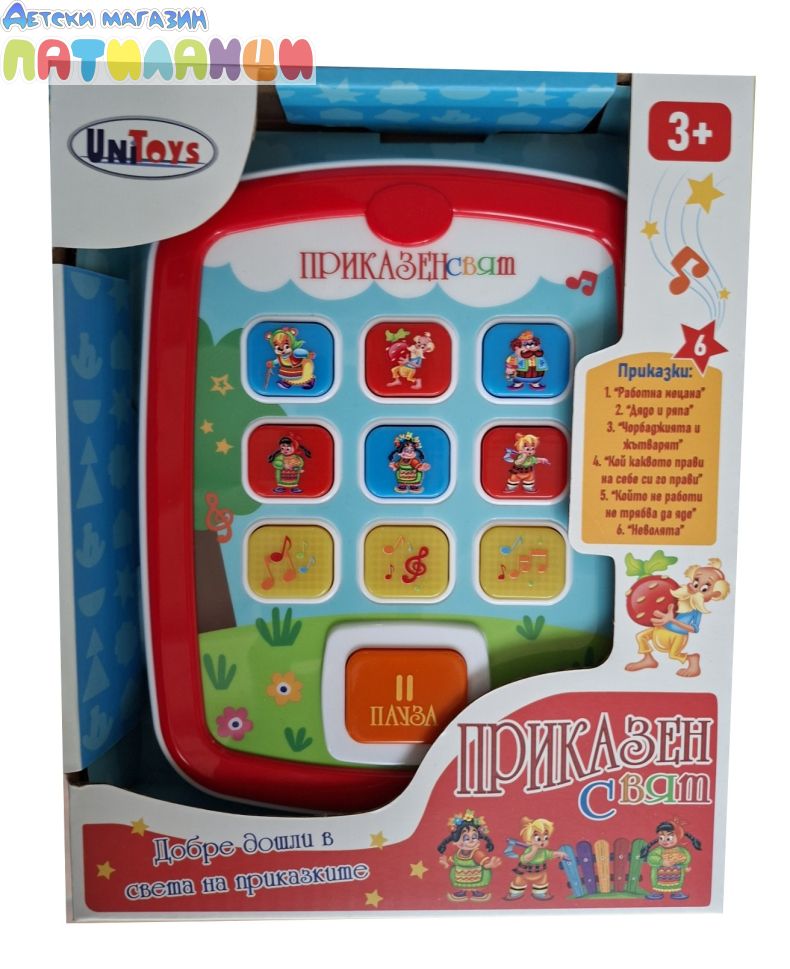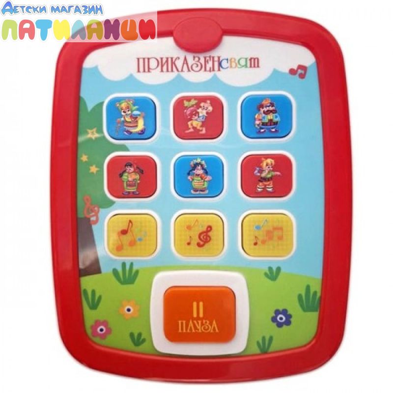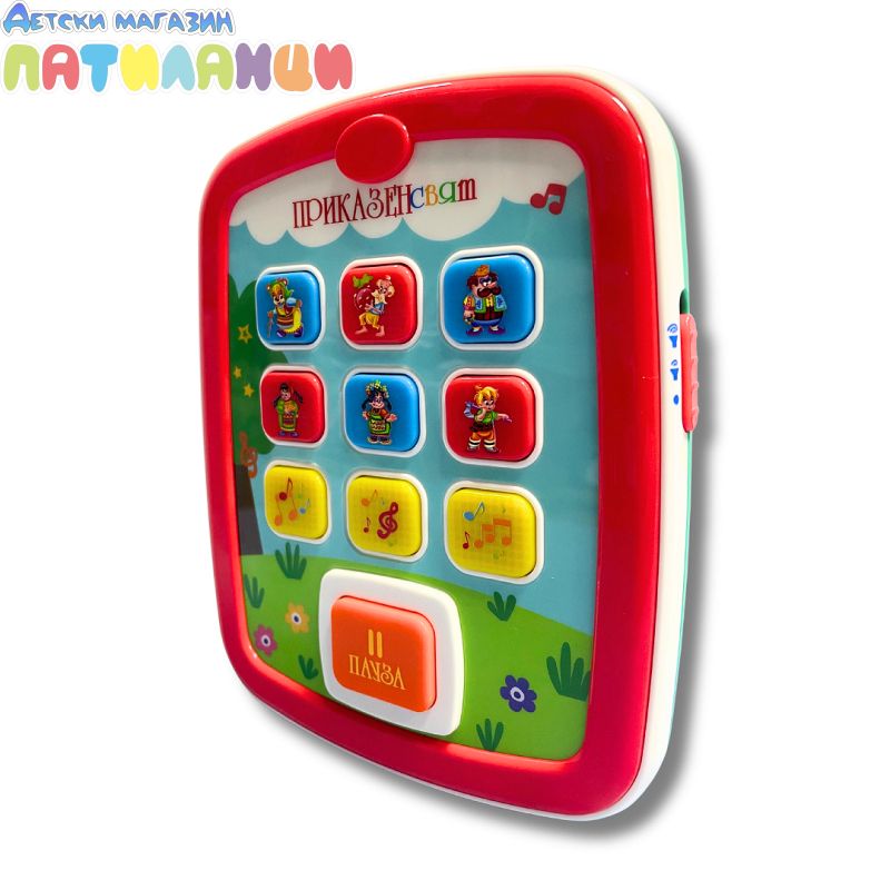 Детски интерактивен таблет разказвач на български народни приказки и любими детски песни. Проектирана за по-дълго слушане, играчката развива търпение, умение за концентрация, обогатява речта.