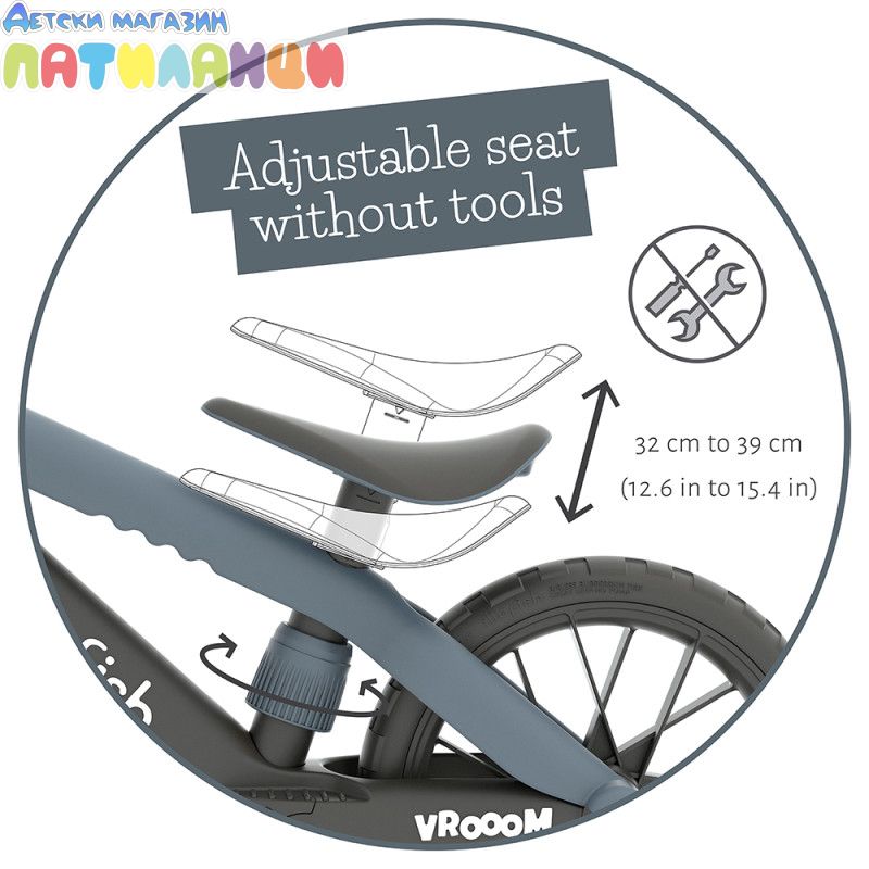 Седалката се регулира без инструменти от 32-41 см. Препоръчителен ръст на детето: 87-110 см