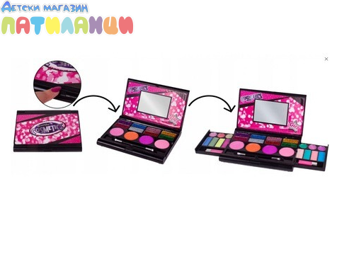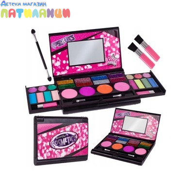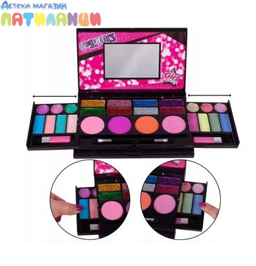 Този комплект включва разнообразие от козметични продукти , като цветни сенки за очи , блестящи гланцове за устни и живи ружове . Всички продукти са безопасни, нетоксични и специално формулирани за деликатната детска кожа . Комплектът за грим се предлага в удобен калъф , който включва също вградено огледало и четка . Идеален за игра и ролеви игри , той насърчава въображението и самочувствието на момичетата . Той е не само чудесен подарък за деца , но и образователна играчка , която подобрява фината моторика и координацията око-ръка . Кутийката за гримове за момичета е лесна за транспортиране и осигурява часове забавление на детски партита или у дома. Козметиката се пере лесно с вода. Задължителен артикул за всяка малка кралица на красотата .