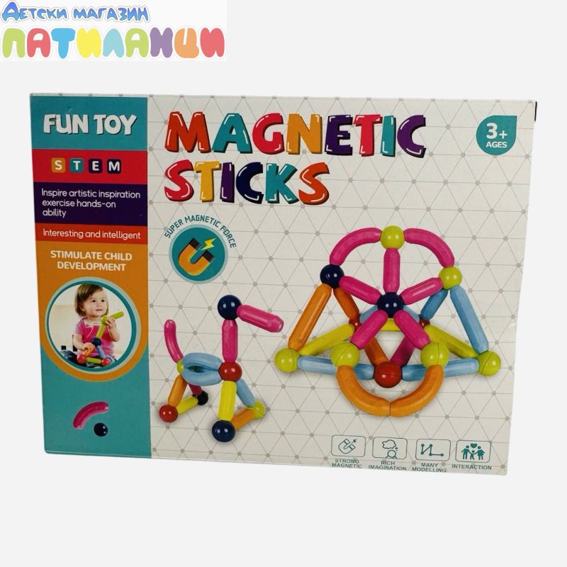 Конструктор с магнитни пръчки Magnetic Sticks е забавна и образователна играчка, която стимулира въображението и креативността на децата! С помощта на магнитните елементи малчуганите могат лесно да създават различни фигури, конструкции и 3D модели.