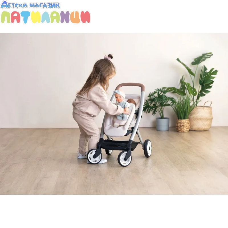 Количката впечатлява с модерен дизайн, вдъхновен от истинските бебешки колички, и предлага удобство при управление. Леката и стабилна конструкция я прави лесна за бутане, а ергономичната дръжка осигурява комфорт по време на игра.