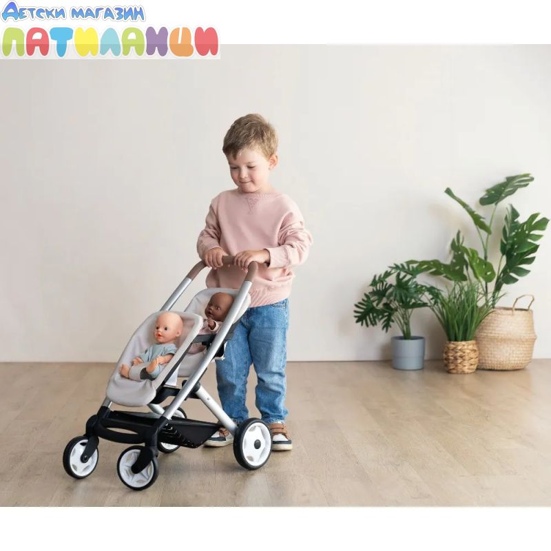 Подарете още повече забавление на детето си с количката за кукли близнаци Smoby Maxi-Cosi в елегантен бежов цвят. Създадена специално за игра с две кукли едновременно, тя е идеална за малките любители на ролевите игри.
