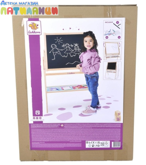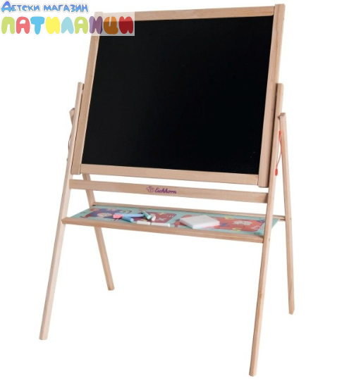 Стимулирайте креативността на детето с дървената двустранна дъска за рисуване от Eichhorn. Практична и забавна, тя предлага две повърхности – едната за рисуване с тебешир, а другата за писане с маркер, което я прави идеална за разнообразни творчески занимания.