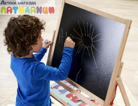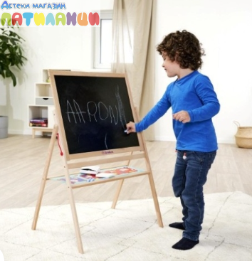 Дъската е изработена от висококачествено дърво и е със стабилна конструкция, подходяща за ежедневна употреба. Лесна за използване и почистване, тя насърчава развитието на въображението, фината моторика и първите умения за писане и рисуване.