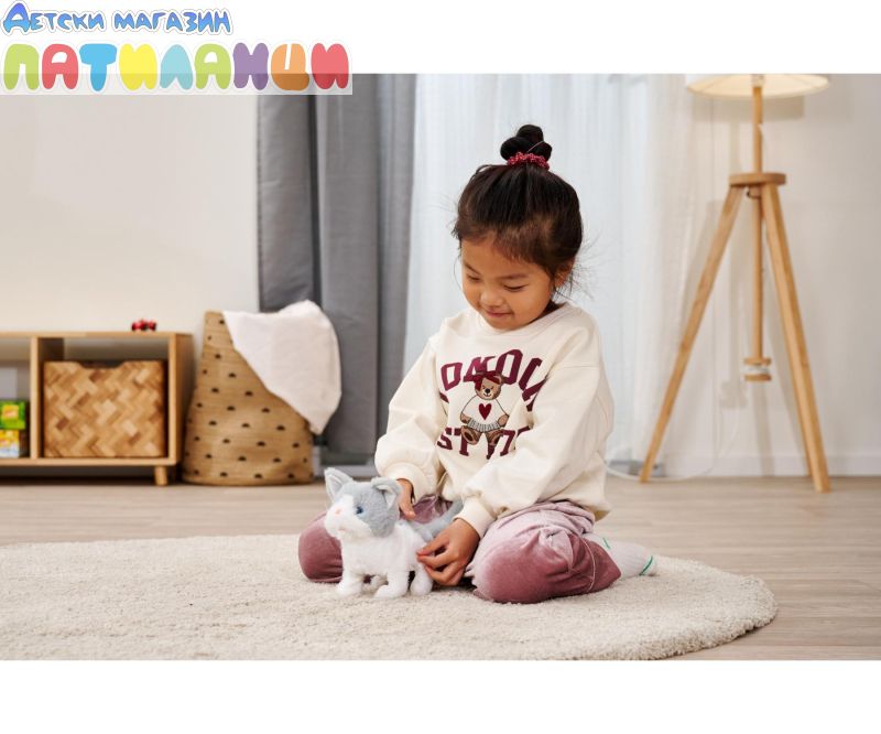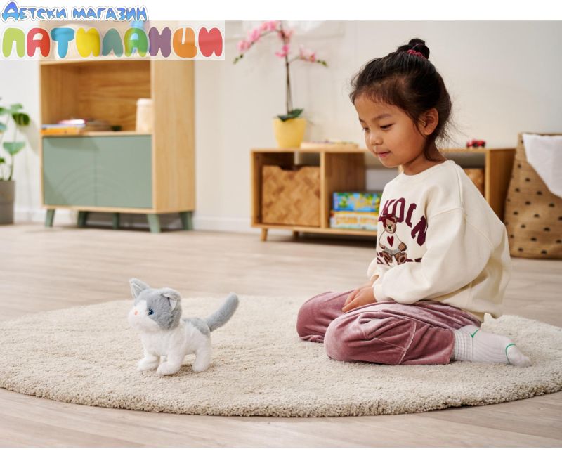Котенцето е меко и приятно на допир, а интерактивните му функции стимулират въображението и създават усещане за истински домашен любимец. Перфектно е за деца, които обичат животни и искат да се грижат за свое „малко приятелче“.