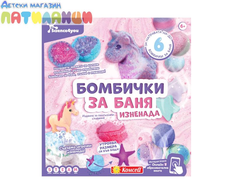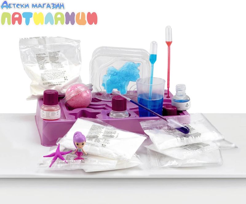 С тази образователна играчка ще можете да създадете собствени бомбички за вана и да откриете цялата наука зад процеса! Открий тази нова версия, в която ще научиш стъпка по стъпка как да направиш до 6 бомбички за вана и да намериш изненадваща играчка вътре, специално подготвена за теб. Всичко, което ви трябва, за да създадете красиви бомбички за баня с множество цветове и форми! Направете времето за къпане вълшебно с ръчно изработени бомбички за баня, пълни с изненади! Разберете как да смесите включените в комплекта реактиви, за да създадете пенливи бомбички за баня с изненади, които растат във водата! Направете бомбички за баня с мехурчета, геоди, пълни със соли за баня и много други!