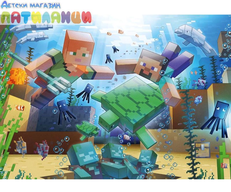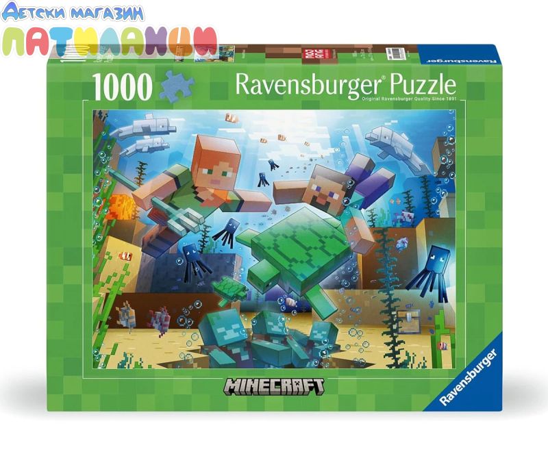 Изградете свят на приключения блок по блок с този пъзел „Майнкрафт мозайка“! Minecraft позволява на играчите безкрайна креативност в безкрайна биосфера! Изберете режим на оцеляване, в който изграждате подслони и се борите с чудовища. Или изберете Творчески режим, в който сте неуязвими и имате достъп до неограничени ресурси. Точно тук се представя изграждането на тази подводна сцена, с изследователите Алекс и Стив, които опитват съкровища под водната повърхност и се борят с удавените - тези зомбита нямат унищожаване! Светът на Minecraft и този забавен пъзел са вашите за създаване! Ravensburger Puzzles означава забавление с пъзели с първокласно качество. За начинаещи, напреднали потребители или професионалисти - има правилен брой части и правилен мотив за всеки любител на пъзелите. Части от пъзел, характерни и уникални благодарение на ръчно изработени инструменти за пробиване, десетилетия опит в производството на пъзели и високи стандарти за качество карат сърцата на пъзелистите да бият по-бързо. Пъзелите Ravensburger от 1000 части са изработени с първокласно качество и са с размери 70 x 50 см, когато са готови. Идеален за възрастни и за деца над 14 години. Изработени са от изключително дебел картон, комбиниран с фина, ленена структурирана хартия, за да създадат изображение без отблясъци и да осигурят възможно най-доброто изживяване. От забавно прекарано време заедно със семейството, до пълен релакс след напрегнат ден, има толкова много положителни неща в реденото на пъзелите. Това е подкрепено от десетилетия опит в производството на пъзели и високи стандарти за качество на материал, мотив и дизайн. Уникалността на характерните части от пъзела се постига чрез ръчно изработени инструменти за щамповане, които се произвеждат с най-голяма часовникарска прецизност в Равенсбург в Горна Швабия. Тази страст към качеството, вниманието към детайла и огромната селекция от мотиви правят пъзелите Ravensburger толкова уникални и гарантират незабравимо изживяване.
