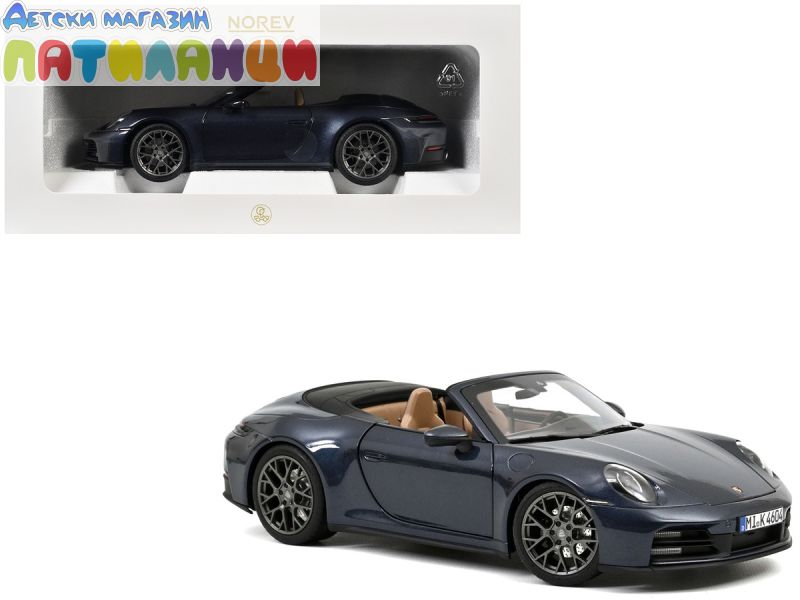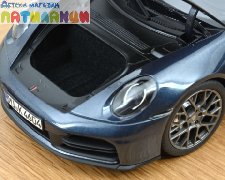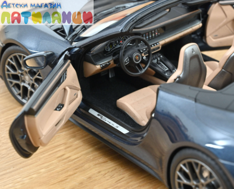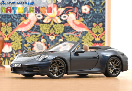 Изработен в мащаб 1:18, автомобилът впечатлява с прецизна метална конструкция и детайлно изпълнение на всяка линия. Цветът Yachting Blue Metallic придава дълбочина и изисканост, подчертавайки плавните форми и характерния силует на Porsche 911 Cabriolet.