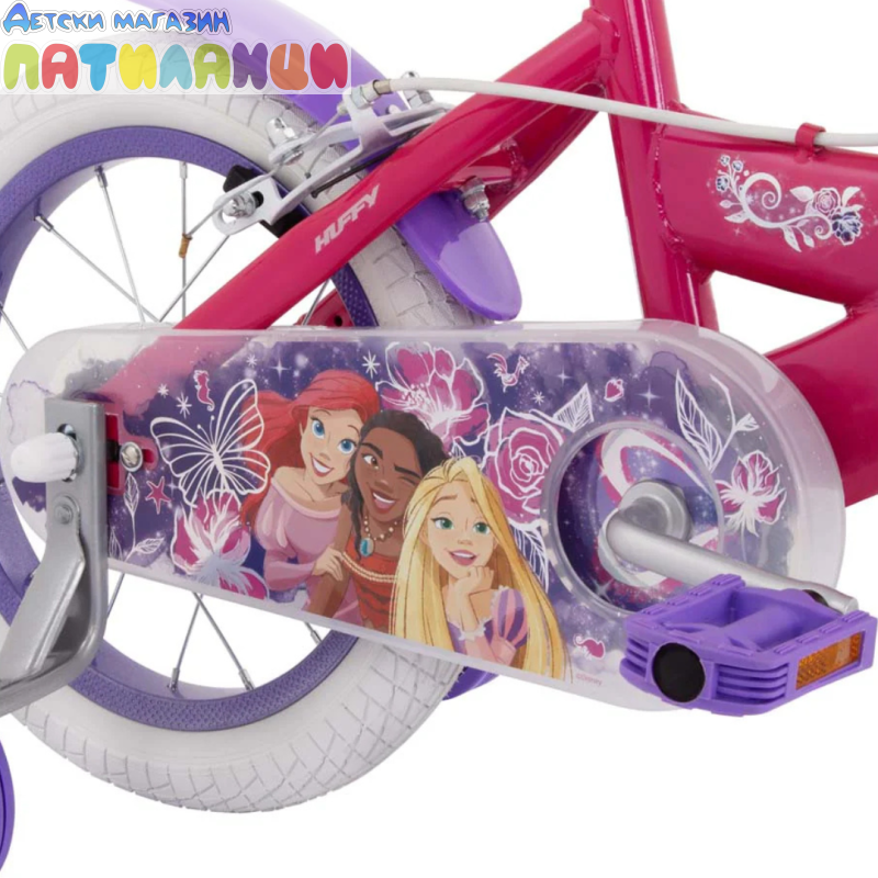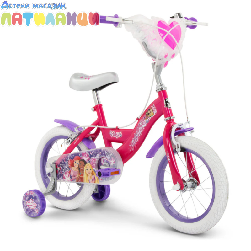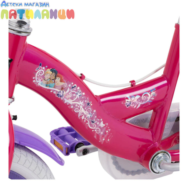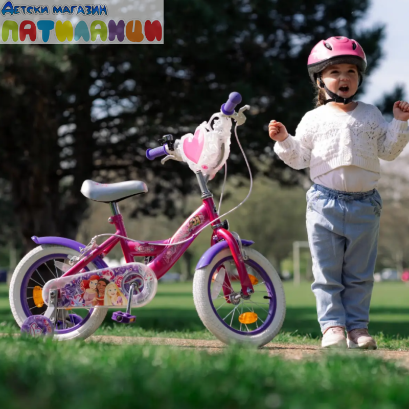 Любимите принцеси на Disney Ваяна, Ариел и Рапунцел са готови за ново приключение! Колелото Disney Princess за начинаещи велосипедисти има свалящи се помощни колела, които поддържат детето стабилно, докато се учи, но лесно се свалят, без допълнителни инструменти, когато малката велосипедистка е готова да кара на две колела. Родителите ще оценят допълнителните елементи за безопасност, като надеждната ръчна спирачка, светлоотразителите, калниците и напълно затворения предпазител на веригата. Освен това, кошницата във формата на сърце и включеното звънче добавят забавление към всяко каране!
