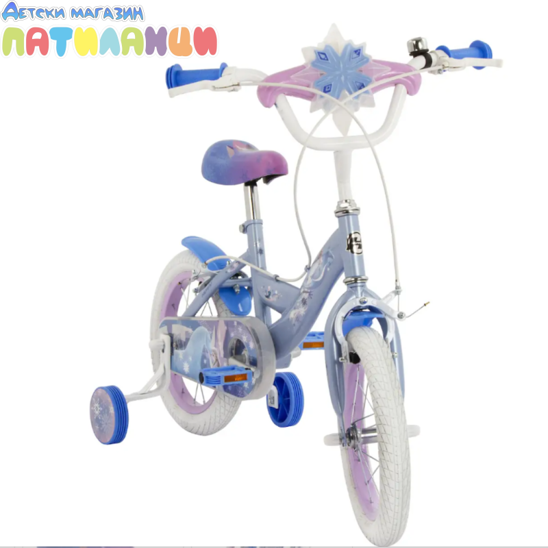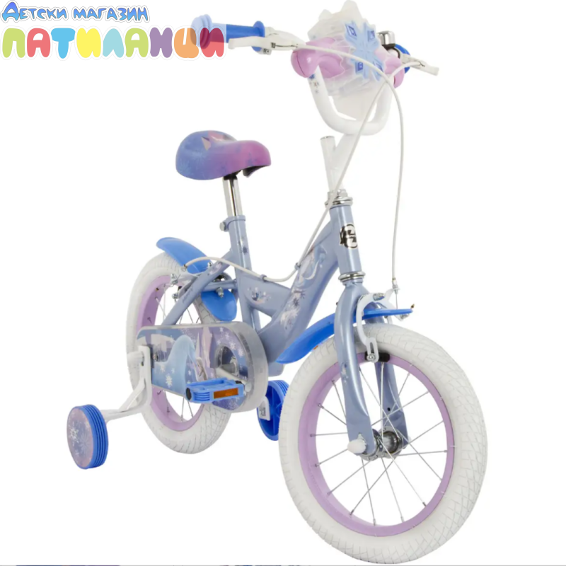 Този 14-инчов велосипед Frozen е идеалното решение за първите самостоятелни опити. Има помощни колела, които помагат за стабилността, докато детето се учи, но лесно се свалят, когато е готово да тръгне на две колела. Родителите ще оценят допълнителните функции за безопасност, като надеждната ръчна спирачка, светлоотразителите, калниците и напълно затворения предпазител на веригата. Освен това, устройството за създаване на балончета на кормилото във формата на снежинка и включеното звънче добавят забавление към всяко каране!