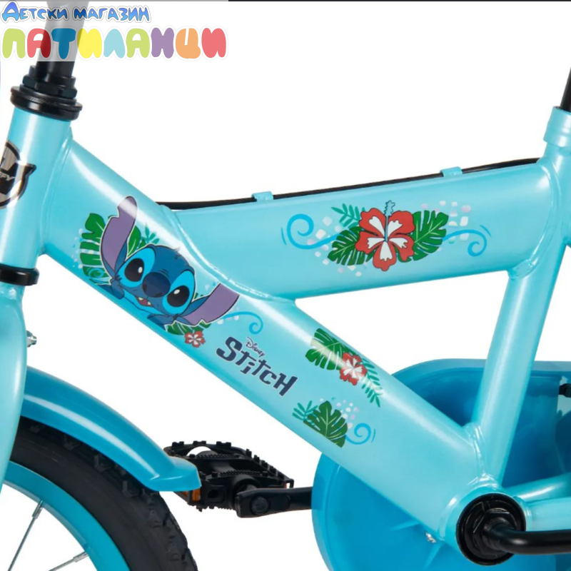 Готови за приключения с новия детски велосипед Disney Stitch с размер 16"/40 см - идеален за деца, които се учат да карат, и изпълнен с игрив плажен чар. С ярък дизайн и емблематичното изображение на Stitch на кормилото и предпазителя на веригата, този велосипед е създаден, за да вдъхва увереност и забавление при всяко каране. Предлага се със свалящи се помощни колела, което улеснява прехода от начинаещ към самостоятелно управляващ велосипедист. Простата спирачна система осигурява безопасно спиране, а подплатената седалка и меките дръжки осигуряват комфорт на детето ви по време на цялото му пътуване. Със своята здрава конструкция, очарователен дизайн и регулируеми функции, този велосипед е идеалният избор за млади велосипедисти, готови да изследват света със Stitch!