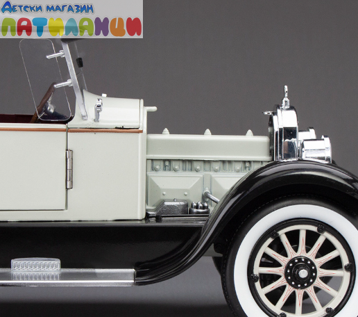 Моделът впечатлява с автентичния си светлосив (Light Grey) цвят, реалистичен интериор и фино изработени елементи като фарове, гуми и хромирани акценти. Изработката от висококачествени материали гарантира дълготрайност и устойчивост, което го прави идеален както за колекционери, така и за любители на ретро автомобили.