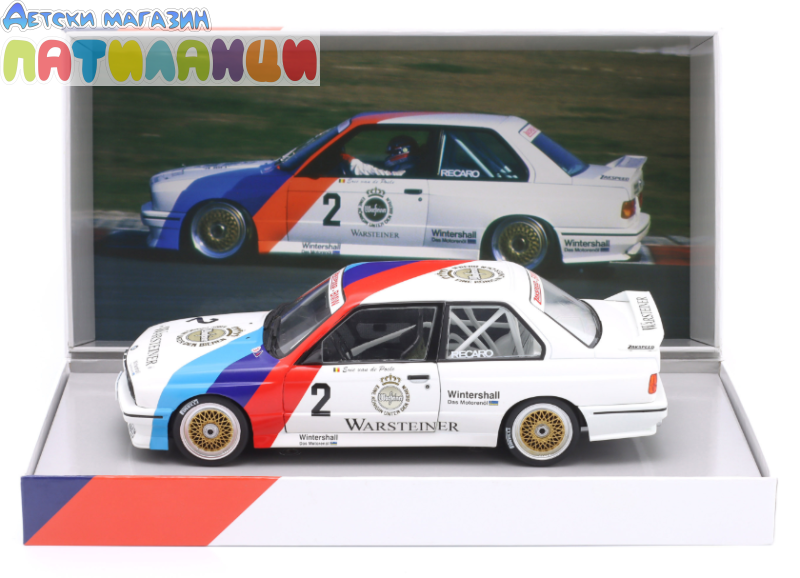 Добавете легенда от моторните спортове към своята колекция с този впечатляващ модел на BMW M3 (E30), посветен на състезателя Eric van de Poele и неговия успех в DTM шампионата през 1987 година. Този автомобил е символ на скорост, прецизност и състезателен дух.