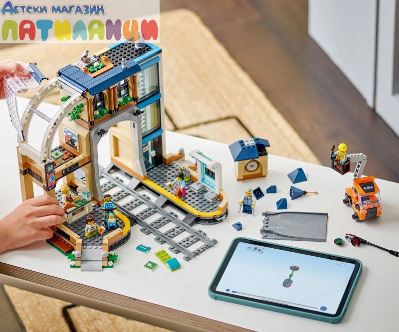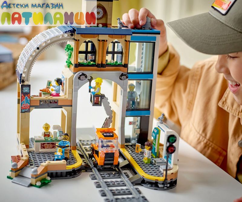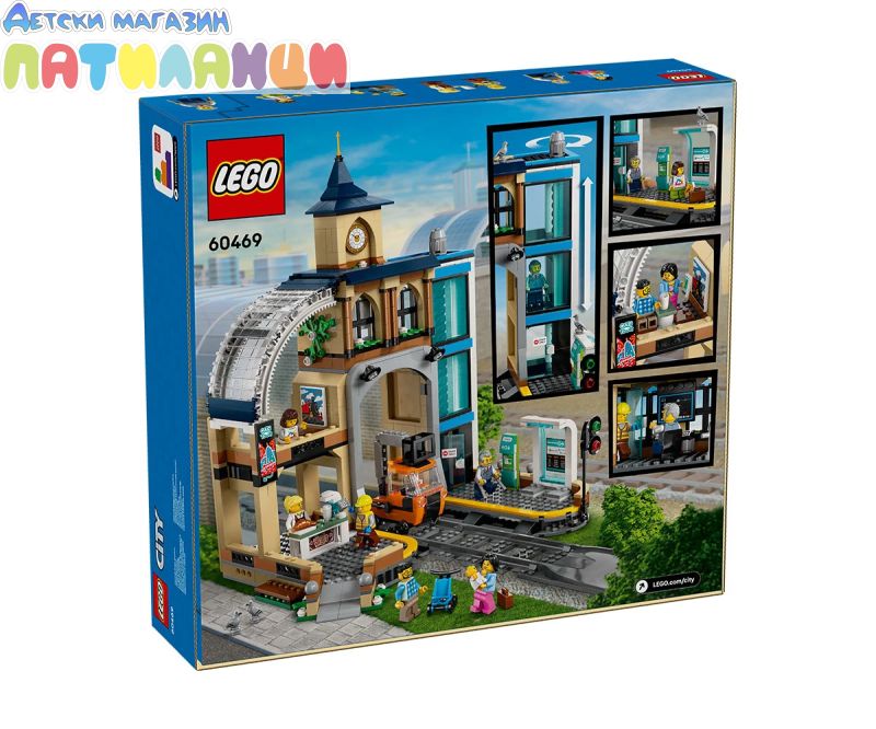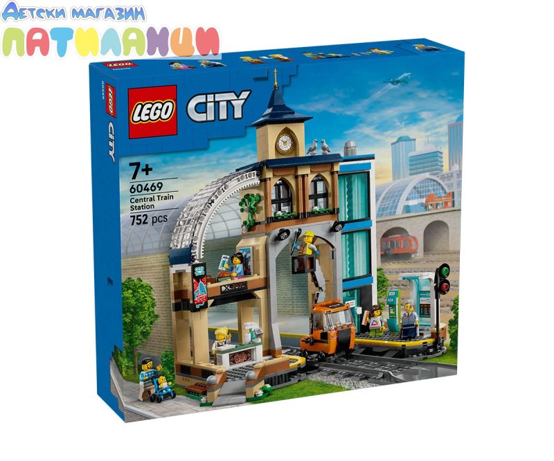 Тази играчка за конструиране на LEGO® City Централна гара (60469) за възраст над 7 години има страховити елементи за игра с въображение на 3 нива. Завършена с класическа часовникова кула, гарата включва уютно кафене, работещ асансьор, контролна зала, автобусна спирка, два пътнически перона, разписание на влаковете и автомат за билети. Децата получават и мотриса за поддръжка, оборудвана с товар, плюс 6 минифигурки, фигура на бебе и 2 фигури на гълъб за ролева игра и разказване на историята. Този комплект с модел на жп гара включва печатно ръководство за построяване на „стъпка по стъпка“ и цифрови инструкции в приложението LEGO Builder. Тук децата могат да машинират и завъртат модели в 3D, да запазват комплекти и да проследяват напредъка си, докато строят. Комплектите LEGO City предлагат страховити превозни средства, реалистични структури и забавни герои, които вдъхновяват креативността. Децата могат да добавят този комплект LEGO City към други творчески играчки (продават се отделно) от гамата LEGO City, за да разширят света от възможности за игра. Комплектът съдържа 752 части.
