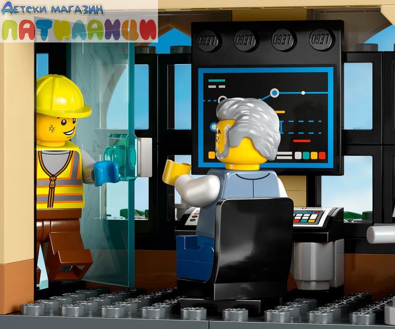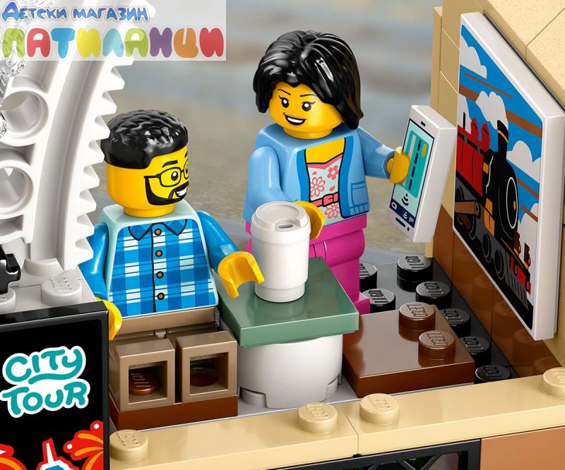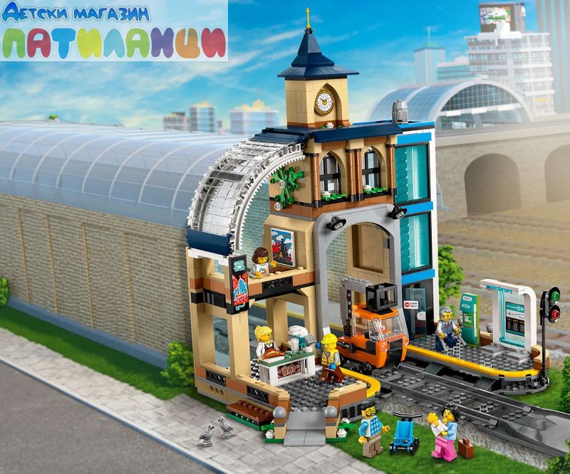 Добре дошли на Централна гара! Вижте разписанието на влаковете, купете си билет от машината и се отпуснете в кафенето под прозрачния навес на покрива. Качете се на борда на мотрисата за поддръжка и повдигнете товарача за ремонт или отидете с асансьора до контролния център. Нахранете гълъбите в часовниковата кула или седнете на автобусната спирка. Епичните пътешествия започват в LEGO® City!