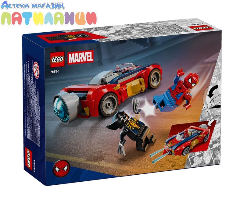 Спуснете се в супергеройски боен ексшън с тази играчка за построяване „Спайдърмен в кола срещу Венъм във Върколака“ за момчето и момичето на възраст над 7 години. Тази готова за битка играчка за построяване на превозно средство с минифигури на Спайдърмен и Венъм във Върколака потапя децата в динамична ролева игра от LEGO® ǀ Marvel. Това е първият продукт от LEGO ǀ Marvel с минифигура на Венъм във Върколака. Бойният супергеройски ексшън се вихри във и около колата на Спайдърмен, който има спусък отзад за активиране на две пружинни оръдия отпред. Този комплект е чудесна идея за подарък за рожден ден на малки супергерои, фенове на филмите на Marvel и колекционерите на продукти със Спайдърмен. А с приложението LEGO Builder децата могат да строят уверено – да компютърират, да завъртат в 3D и да проследяват напредъка с лесни за следващи цифрови инструкции. Впуснете се в ексшън със Спайдърмен в неговата готова за битка суперкола, докато се изправите срещу застраховката Венъм във Върколака в сблъсък, изпълнен с високоскоростна тръпка и супергеройски приключения!