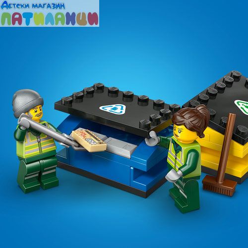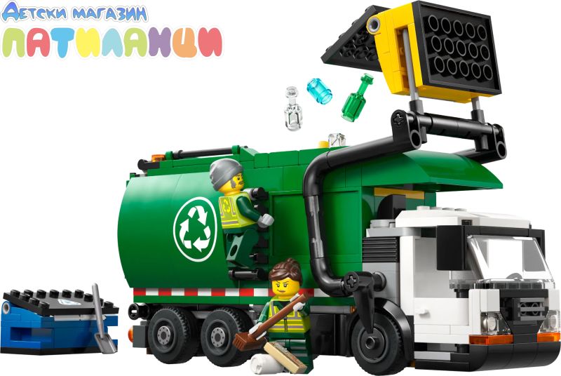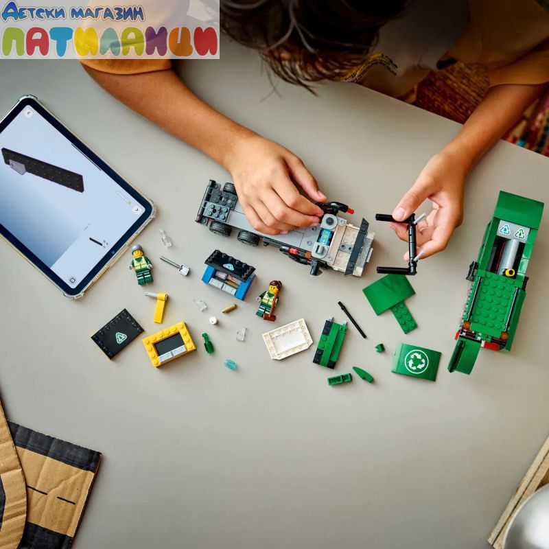 Комплектът включва детайлно изработен камион за събиране на отпадъци, контейнери за рециклиране и минифигури, които правят играта още по-реалистична и забавна.