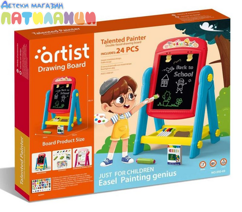 Стимулирайте креативността и въображението на вашето дете с двустранната дъска за рисуване 050-69. Тя предлага две различни повърхности за рисуване и писане, което прави обучението и забавлението още по-интересни.