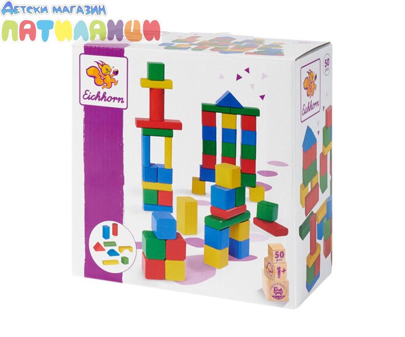 Име: Eichhorn - Комплект дървени блокчета, 50 части