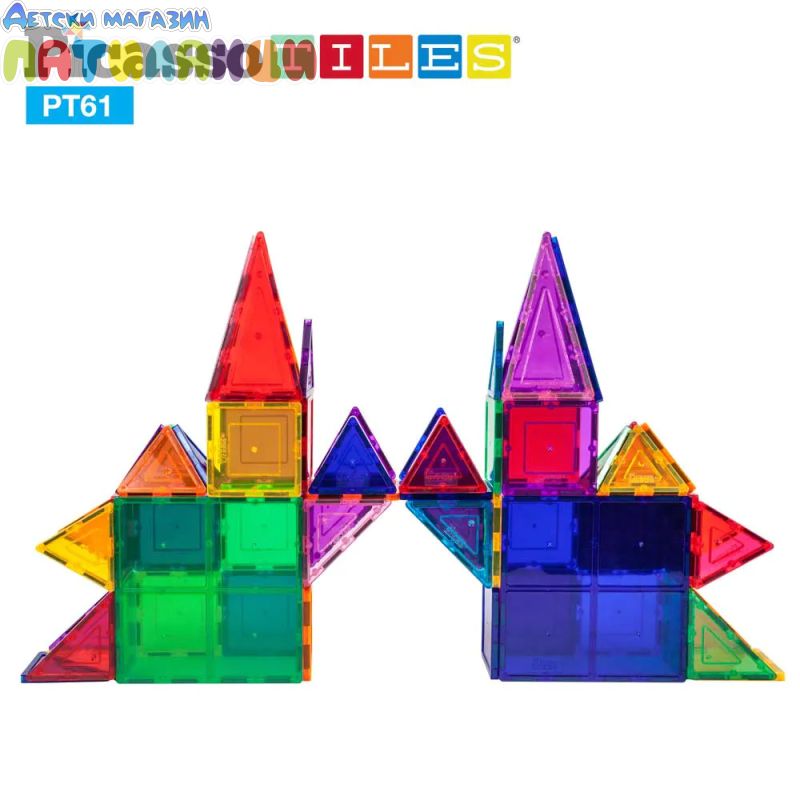 Комплектът за сглобяване от 61 магнитни плочки PicassoTiles ти позволява да проектираш цветни структури, докато изследваш форми, цветове и шарки. Чудесен начален комплект за практическо STEM обучение, ранна геометрия и творческа свободна игра.