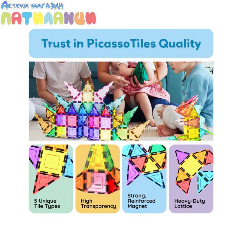 Играчките с магнитни плочки PicassoTiles ангажират младите умове с практическо изследване и интерактивни уроци по наука, технологии, инженерство и математика (STEM). Чрез насърчаване на ключови умения като координацията ръце-очи, решаване на проблеми и пространствена ориентация, ученето става едновременно приятно и полезно.