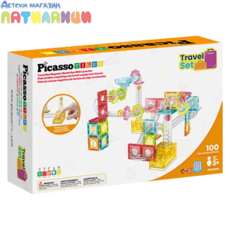 Магнитен конструктор Писта за топчета Travel 100 части Picasso STEAM PTMG100