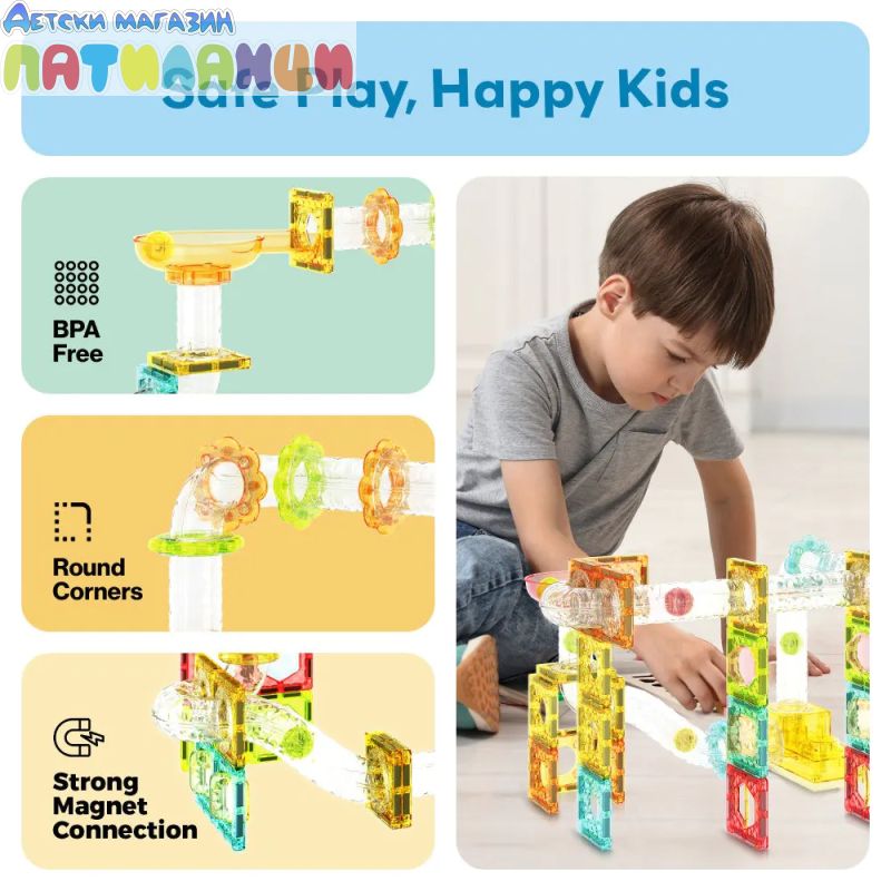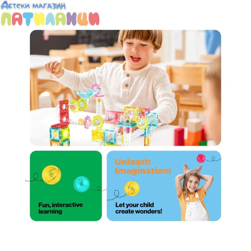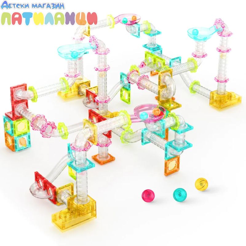 С 100 части децата могат да изграждат сложни 3D писти с наклони, тунели и завои, по които топчетата се движат. Това прави играта не само забавна, но и образователна – развива логика, причинно-следствено мислене и инженерни умения.