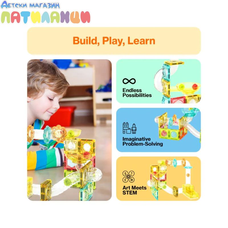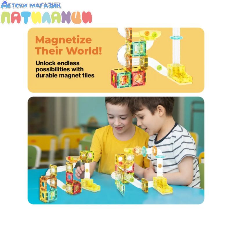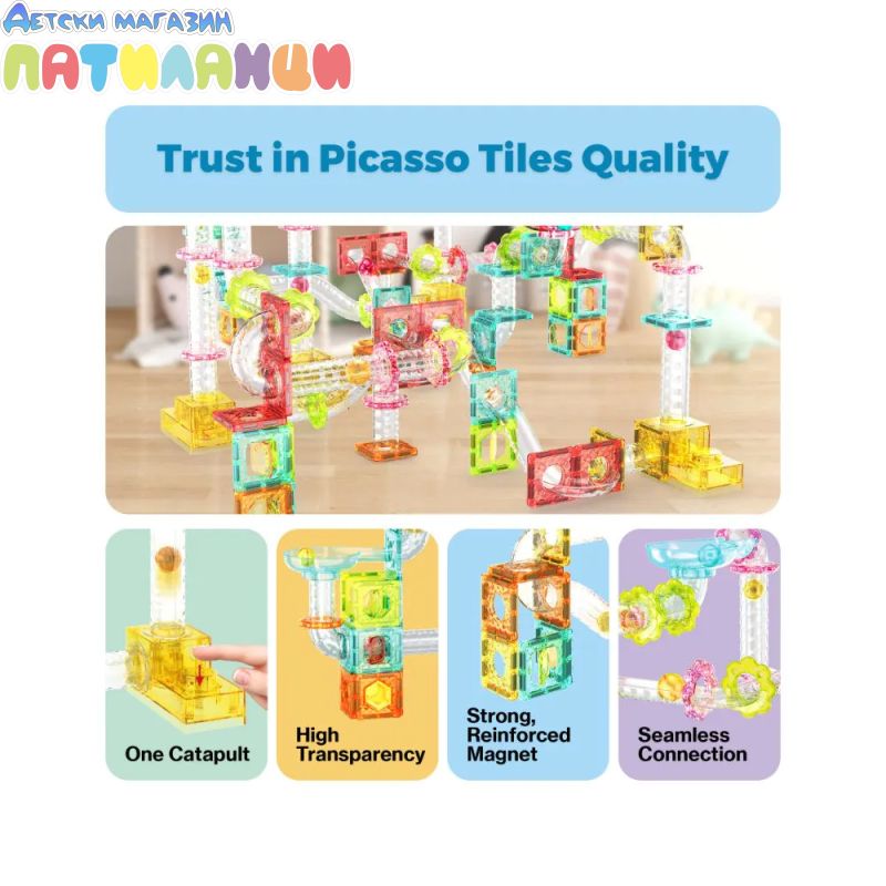Открийте безкрайни възможности за игра и учене с магнитния конструктор Picasso STEAM PTMG100 – писта за топчета. Този комплект съчетава класическите магнитни плочки с динамична писта, която превръща всяка конструкция в истинско приключение.