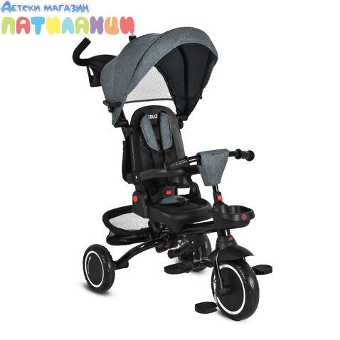 Cruz от Byox е многофункционална триколка, която расте заедно с детето – от първите разходки до самостоятелното управление. Благодарение на регулируемата дръжка, сваляемия сенник, предпазния борд и коланчетата, Cruz предлага безопасност, комфорт и свобода на движение. Подходяща е за деца от 12 до 72 месеца с тегло до 25 кг.