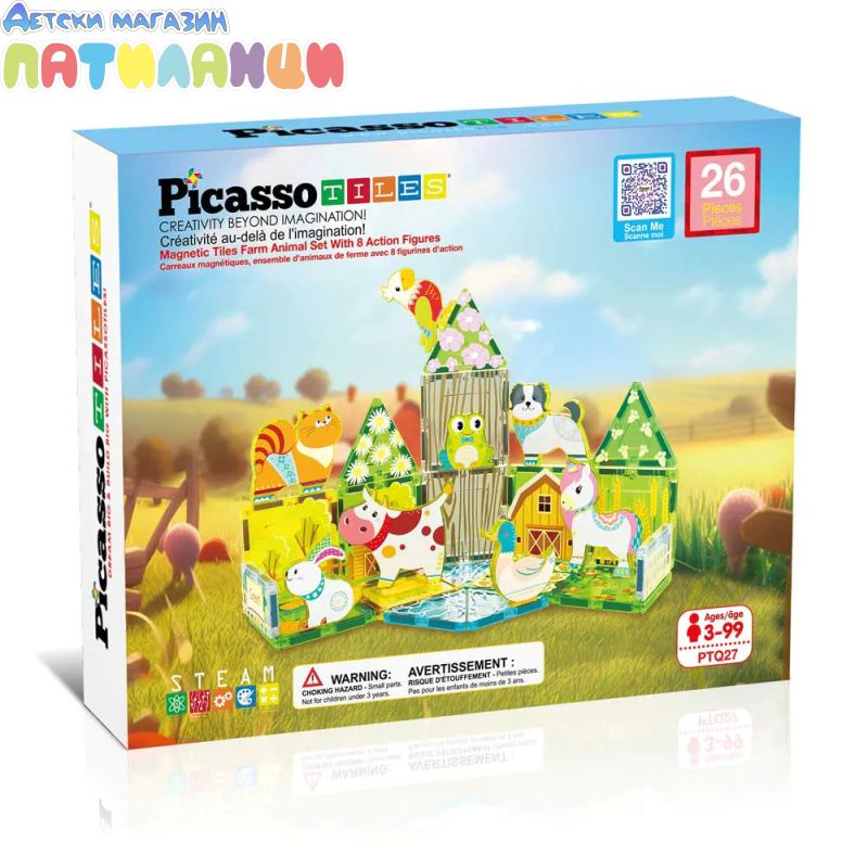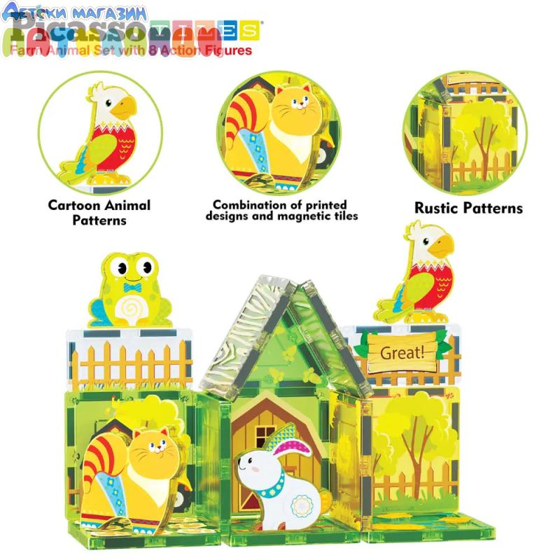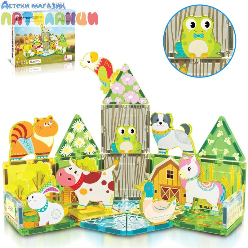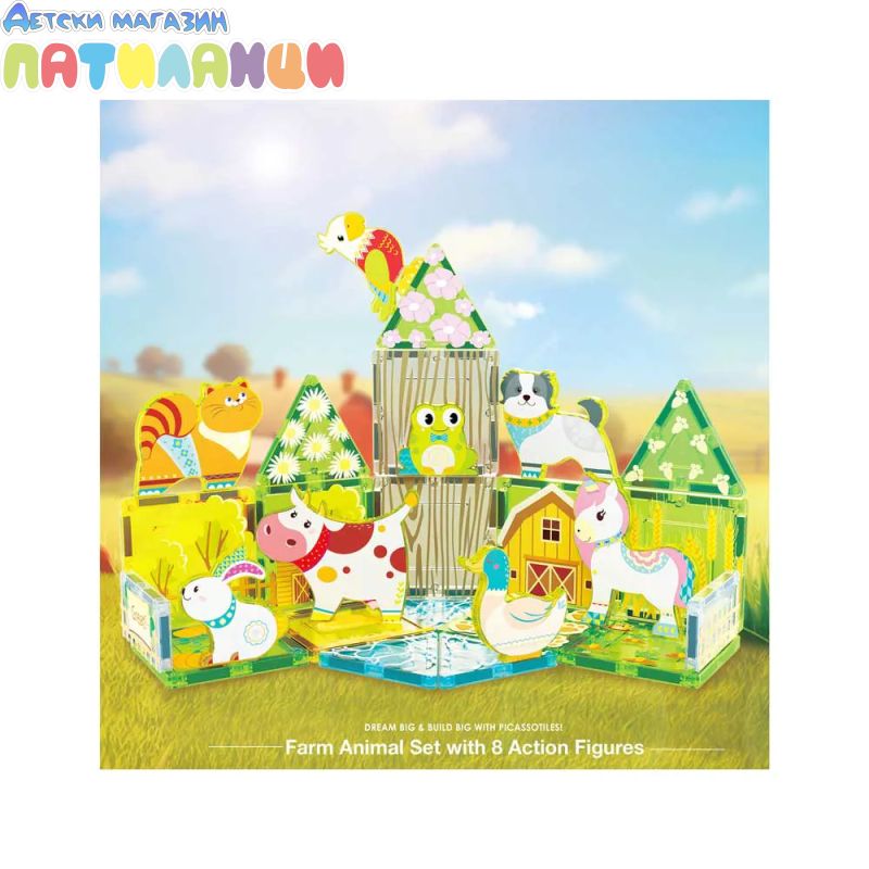 Запознайте се с магнитен конструктор „Ферма за животни“ Picasso STEAM PTQ27 – цветен и образователен комплект, който пренася децата в света на селския живот и безкрайната креативност!
