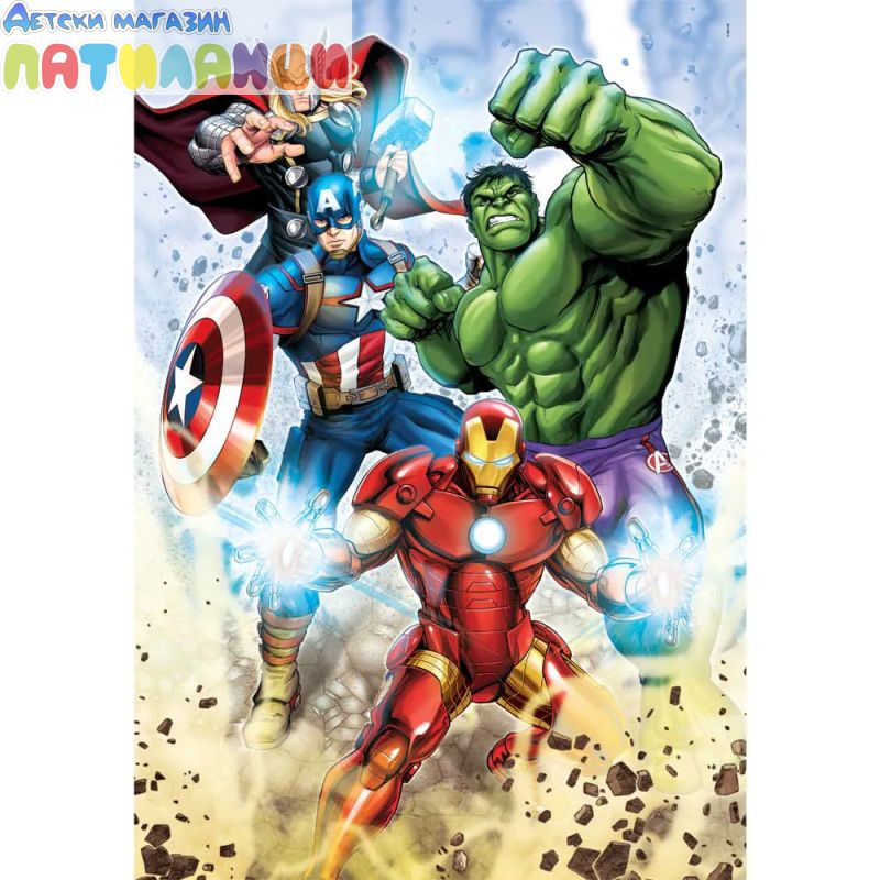 С този пъзел децата ще се потопят в динамичния свят на Отмъстителите, докато сглобяват цветна сцена с емблематични персонажи като Iron Man, Captain America и още. Ярките изображения и високото качество на изработка правят всяка част лесна за разпознаване и приятна за подреждане.